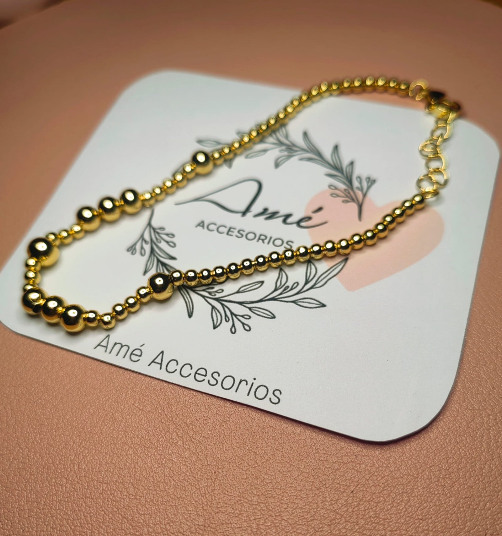 Sutil, femenina y con el equilibrio perfecto entre simpleza y brillo. La Pulsera Esferas Doradas Elegance está compuesta por una delicada secuencia de pequeñas esferas pulidas que reflejan la luz con cada movimiento.